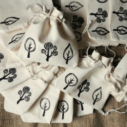 Etui jest wykonane z bawełnianej tkaniny wysokiej jakości i ozdobione autorskimi grafikami w technice linorytu.